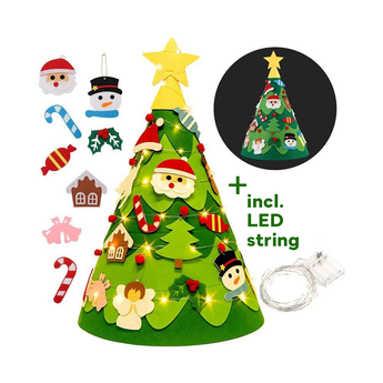 Met 3D XmasCraft haal je een vilten kerstboom in huis die kinderen zelf kunnen versieren met losse vilten kerstdecoraties. Alle vormen zoals: kerstman, sneeuwpop, sterren en cadeautjes zijn al uitgesneden en klaar voor gebruik. Ideaal voor een kindvriendelijke kerst zonder breekbare ballen of rommel.